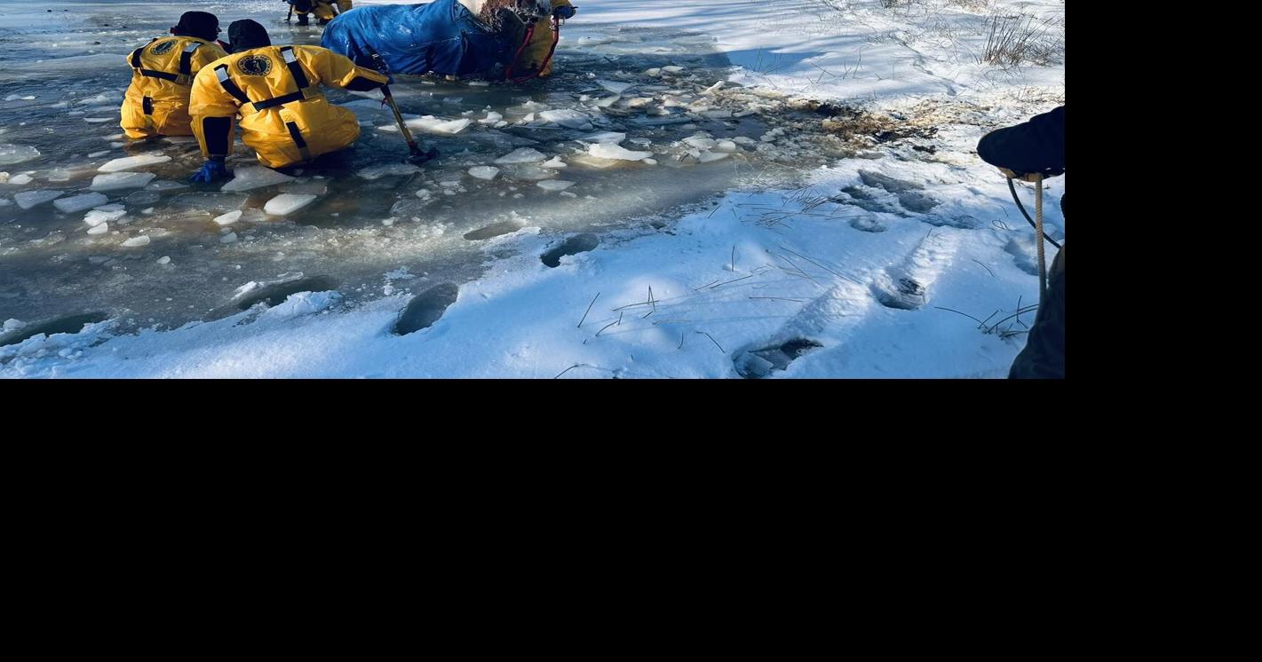 Firefighters rescue horses from frozen pond
